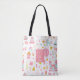 Add a cute custom touch to the bedroom or nursery of your little girl with this adorable pink party pattern shopping tote bag. Tote bag has fun girly items like a unicorn, hot air balloon, doll, balloon, cake, and cupcake. Add a first name, monogram initial, and heart for a personalised touch.