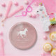 Personalise a unique paper plate for wedding reception guests with a set of Pink Unicorn Bridal Shower Paper Plates. Paper Plate design features a starry background with a unicorn adorned with stars. Personalise with the groom and bride's names along with the wedding date. Additional wedding stationery available with this design as well. Need help with customisation? Please contact me and I will work out the wording and details to fit this design to your satisfaction.