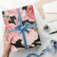 Pink Victorian Roses on Black Pattern Wrapping Paper