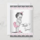 Baby girl thank you card with pink and black lace background and adorable vintage baby girl wearing ruffle pants, pink bunny slippers and pink bow in her hair. This cute pink flat style baby girl thank you card is easily customised by adding your message in the font style, font size & colour, and wording of your choice, or leave blank to add your handwritten message after they arrive.