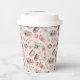 These paper cups feature a pink pastel vintage camera pattern on a blush pink background.