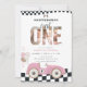 Pink Vintage Race Car First Birthday Invite Photo