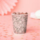 Elevate your event with our elegant paper cups featuring a pattern of vintage pink wedding lace. Perfectly blending shabby chic and glam styles, these cups add a touch of classic boho charm to any occasion. Ideal for weddings, bridal showers, and sophisticated gatherings, they offer a timeless, elegant aesthetic that your guests will love.