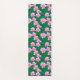 Yoga Mat in a pattern of water lillis in soft shades of pink, and emerald green lily pads, floating on a pool