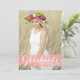 Announce your graduation to family and friends with this customisable graduation card. It features modern white calligraphy on a pink watercolour splash. Personalise this calligraphy graduation announcement card by adding your photo, name and school name. This photo graduation announcement card is perfect for high school or college graduations.