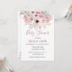 Easily add your custom details to these elegant pink watercolor floral baby shower invitations. The watercolor floral design is in blush pink pastel tones with modern greenery. A choice of background colours are available via customisation.