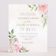 An elegant floral wedding invitation featuring pink watercolor flowers with modern handwritten calligraphy.