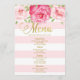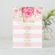 Pink Watercolor Floral Mint Stripes Wedding Menu