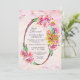 An elegant rustic pink watercolor floral just married oval framed post wedding invitation.