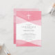 Beautiful pink watercolor with a white cross confirmation invitation with a coordinating gradations of colour back for an extra special touch.