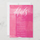 Trendy Bachelorette Weekend invitation with Bachelorette Weekend written in a gorgeous swirly script against a white background sprinkled with pink watercolor kisses. Add your itinerary or details to the back in white text against a deep pink watercolor background.
