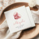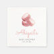 These cute baby shower napkins feature a watercolor image of a stack of three pink French macaron cookies. Add the name of the mother-to-be in whimsical pink handwriting script, along with the date in charcoal gray sans serif font. Ideal for a girl's baby shower.