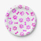 Pink Watercolor Paw Prints Birthday Paper Plate