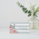 Elegant and chic business cards feature a pastel mint aqua and white striped background with a spray of watercolor blush pink peony flowers blooming from the corner. Personalise with your name and business name, title or occupation. Add your full contact details to the back in a chic mix of modern sans serif and italic lettering, adorned with smaller peonies on the upper right. A chic and feminine choice for makeup artists, hair stylists, aestheticians or any occupation.