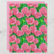 Paper in a pattern of watercolor roses, in shades of deep fuchsia to pastel pink, against a background of green leaves