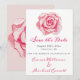 NewParkLane - Elegant 'Save the Date' wedding card, with a beautiful pink rose in watercolor, against a white background. On the backside a matching rose, against a blush pink background.