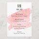 A modern wedding menu features pink watercolor wash background.