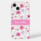 Stylish case-mate iPhone 14 case featuring a delicate pink watercolor wildflower pattern and name.