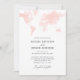 Pink watercolor world map wedding invitation card. With a beautiful blush pink hand painted watercolor world map. Ideal for foreign location weddings or travel lovers.
