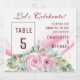 Pink Wave & Floral Table Number Sparkling Wine Lab Label