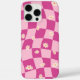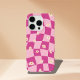 Pink Wavy Chequerboard Daisy iPhone 15 16 cases