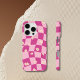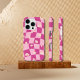 Add a playful touch to your phone with this pink wavy chequerboard iPhone case, featuring a retro-inspired design with charming daisy flowers. The bold pink and light pink chequered pattern, accented with scattered white and yellow daisies, creates a fun and trendy look perfect for anyone who loves vintage style with a modern twist. This durable and protective case is compatible with all iPhone models, making it a versatile accessory or a thoughtful gift for flower and pattern lovers.