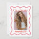 Pink Wavy Frame Trendy Photo Graduation Invitation