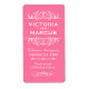 Perfect for vineyard weddings or wine bottle favours, these elegant vintage flourished style labels feature a custom wedding monogram with bride and groom's names, the wedding date, type of wine, and thank you message that can be completely personalised. Bright pink colour with white text.