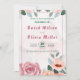 Charm your guests with a delicate wedding invite featuring a soft pink watercolor backdrop adorned with elegant roses and lush green leaves, exuding timeless romance in a simple yet enchanting design.