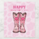 Wine bottle label in a modern and fun pink western cow print with heart-embellished cowboy boots. Personalise the ranch-style typography to fit your celebration. Perfect for galentine's day, valentine's, birthday, girls night out, western cocktail party, bachelorette, or whatever you want.