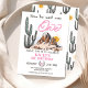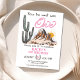 Cute girl's western themed first birthday invitation featuring a cactus desert landscape, rope style word one, and hand drawn horseshoe. This wild west girl's 1st birthday invitation is ideal for a western themed first birthday party.