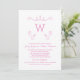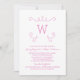 Modern and simple Whimsical Flourish Monogram Wedding Invitation featuring an elegant swirl motif in pink. Easy to customise, simply add your initial and wedding details in the text fields provided. Click "Customise It" to find more personalisation options.