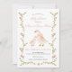 This baby shower invitation design features a cute goose and her mama, and a whimsical watercolor greenery frame design with pink floral elements. Perfect for the trendy goose/duck theme, or backyard garden baby showers.