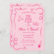 Pink Whimsical QR Code Hand Drawn Photo Wedding Invitation