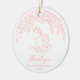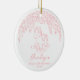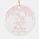 Personalized baby's first Christmas ornaments feature whimsical hand drawn doodle floral and rocking horse in blush pink and white, cute and modern.