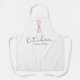 This Apron design features a minimalist hand-drawn illustration of a hand holding a whisk, rendered in soft pink lines, paired with elegant black cursive text for the word "Kitchen." Below, a customisable name is written in bold uppercase letters in a chic pink font, making it a perfect personalised gift.