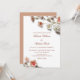 This contemporary minimalist wedding invitation features apricot pink white 3 dimensional wildflowers on a white gray background.