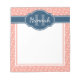 Stylish, trendy blush pink and white anchor pattern in the background, topped with a navy blue label featuring a customisable name and monogram template.