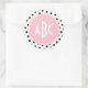 Pink White and Black Polka Dots Monogram Classic Round Sticker