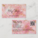 This chic business card features a pink, gold and white marbled design with gold glitter accents.