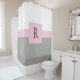 Your family will be delighted to have this monogram shower curtain in their bathroom. Featuring a white, pink and grey solid colour background, there is a pink and grey decorative square in the middle of the design. Monogram your initial in the middle.