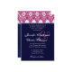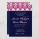 This pink, white and navy blue damask design makes an elegant wedding invitation, and is currently featured on an ice hued metallic paper which gives your invitation a special shimmer and glow. You can experiment with different paper types to get just the look you want.
