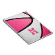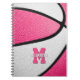 This cute basketball themed spiral notebook features the realistic image of an abstractly oversized basketball that has alternating pink and white recolored panels - athlete's name and monogram, varsity letter, or jersey number are customisable on the front cover - by katz_d_zynes