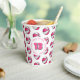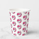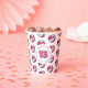 These basketball birthday party paper cups feature multiple small pink & white basketballs arranged in a simple drop pattern - text on a white circle graphic can be customised, currently the number 13 to represent a child's age encircled by the words, "Happy birthday" - by katz_d_zynes