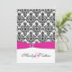 Pink, White, Black Damask Wedding Invitation