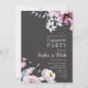 Pink, White & Blue Floral | Slate Engagement Party Invitation - Are you looking for a pretty floral engagement party invitation? Check out this Dark Grey invitation, which has pink, white and blue flowers on the top and the bottom of the engagement invitation. These pretty flowers are framing the words, creating a beautiful Spring or Summer theme on your wedding stationery.