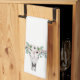 Our custom kitchen towel adorned with soft pastel Pink White Boho Cow Head Floral. View our full line of products in our Zazzle store.