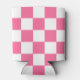 Pink White Chequered Check Pattern Can Cooler