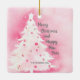 A lovely white Christmas tree with holiday decorations on a pink watercolor background. This is a fine vintage design that showcases a "Merry Christmas and Happy New Year" greeting. You can edit the grey script text. Be sure to change the example "from" names to those of your own.
