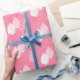 This simple Christmas tree pattern wrapping paper roll features a modern pink and white design. A unique way to wrap your holiday presents this festive season. You can change the background colour to any of your choice.